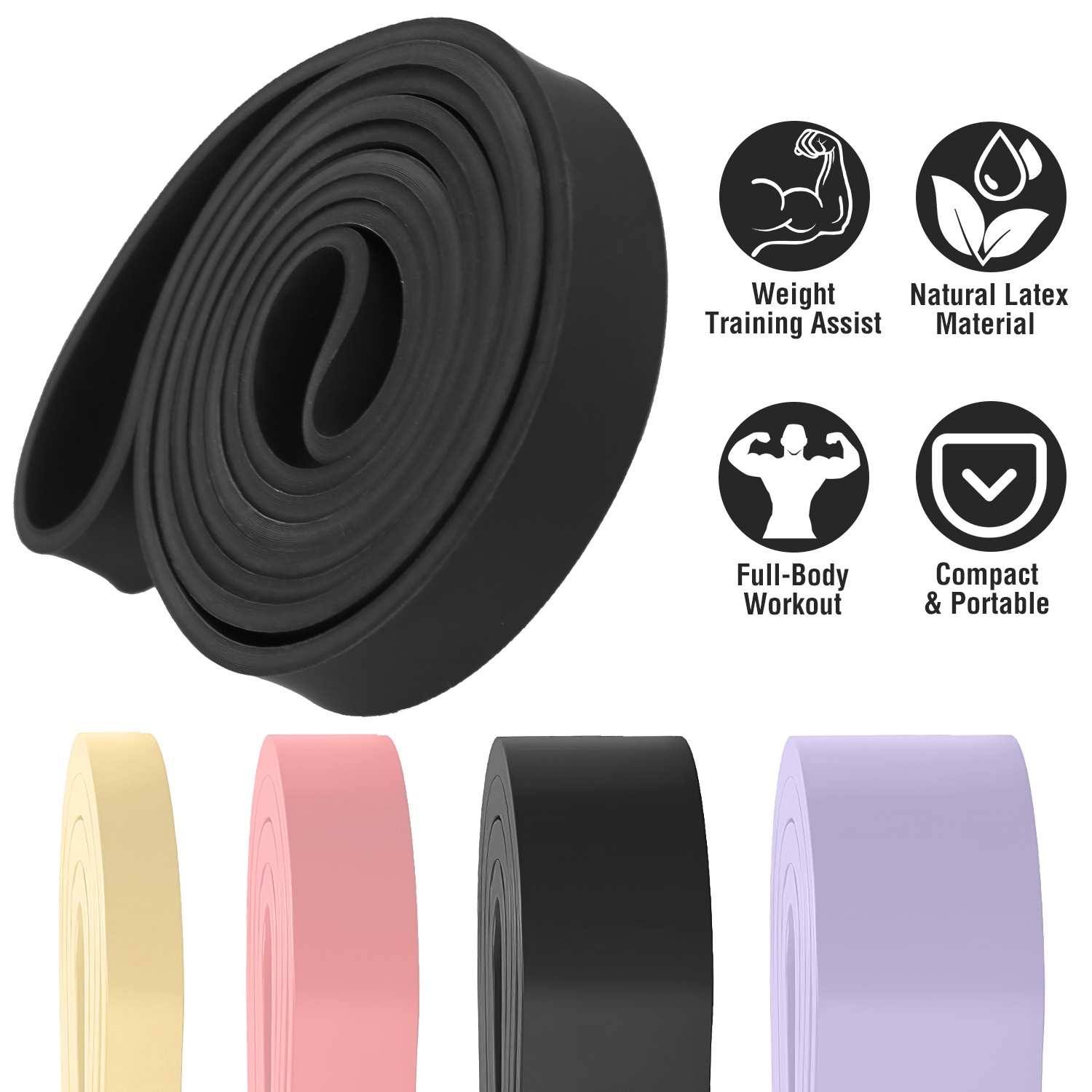 Our pull up assistance bands offer effective training. Workout your arms, back, legs and butt all at once with this mobility band, perfect for body resistance training and physical therapy to help strengthen torn ligaments or muscles. 4 Different bands are perfect for learning pull ups, Pilates, Mobility, Powerlifting, Chin ups, Yoga, Stretching, Gymnastics, physical therapy, push-ups, barbell and dumbbell assist etc.. Small, light and flexible, they can be tucked away anywhere. Just enjoy an effective full-body workout anytime you want with this resistance band!