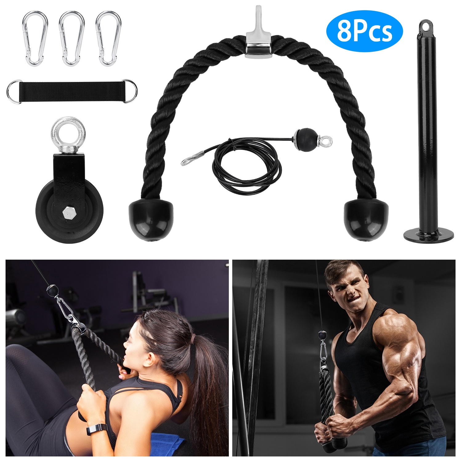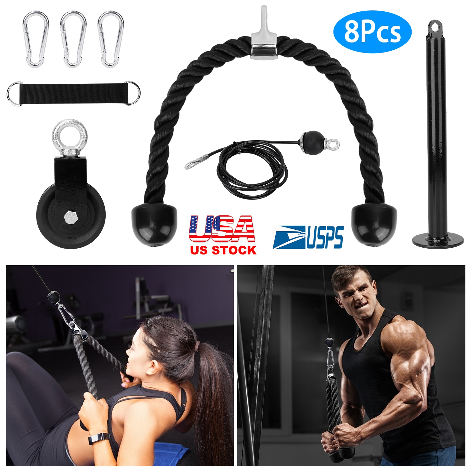 Home > 8Pcs Cable Pulley System Gym Fitness LAT and Lift Pulley System DIY Home Gym Equipment Gym Machine w/ Tricep Rope Cable Attachment For Arm Strength Tr